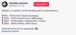Ο Stavento έχει ανεβάσει το πρόγραμμα των συναυλιών του στον προσωπικό του λογαριασμό στο TikTok.