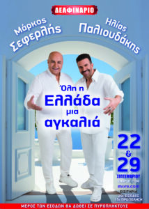 Με παρουσιαστή τον μοναδικό Μάρκο Σεφερλή και τραγουδιστή τον εξαιρετικό Ηλία Παλιουδάκη, η σκηνή του Δελφιναρίου γεμίζει με μελωδίες και ρυθμούς από κάθε γωνιά της πατρίδας μας.