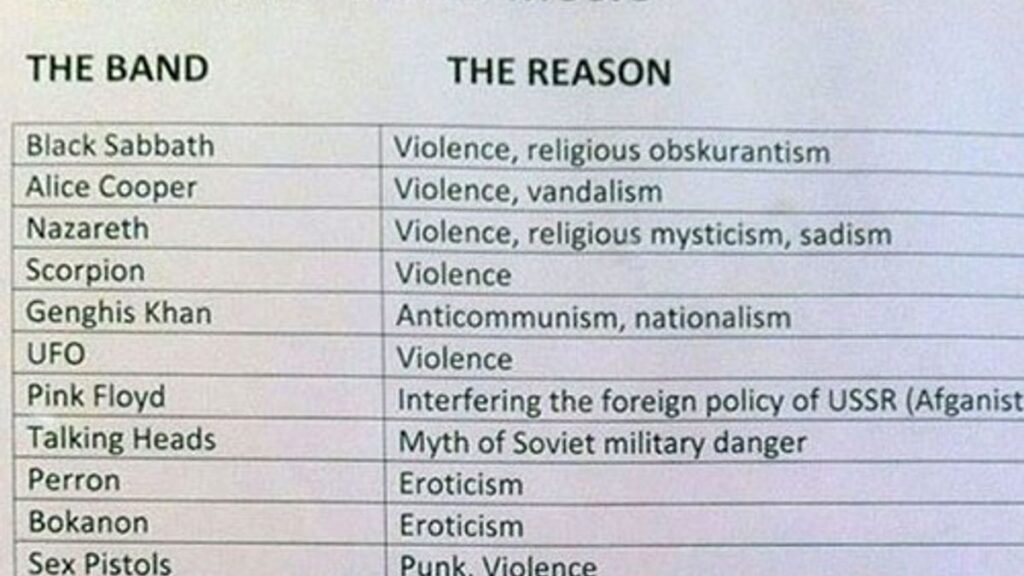 Οι Απαγορευμένοι Καλλιτέχνες του Rock και Metal στην Σοβιετική Ένωση Λίστα και Ανάγκη για Αυτολογοκρισία Στις 6 Ιουνίου 2014, η ιστοσελίδα Uproxx δημοσίευσε μια μεταφρασμένη λίστα, με τίτλο: «Η προσεγγιστική λίστα ξένων μουσικών συγκροτημάτων και καλλιτεχνών των οποίων τα ρεπερτόρια περιέχουν επικίνδυνες συνθέσεις». Αυτή η λίστα μας βοηθά να κατανοήσουμε τους λόγους για τους οποίους […]