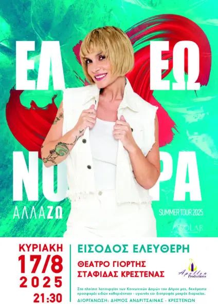 Την Κυριακή 17 Αυγούστου στις 21:30 η συναυλία της δημοφιλούς τραγουδίστριας στο χώρο της πρ. Γιορτής Σταφίδας Μια ακόμα κορυφαία εκδήλωση διοργανώνει ο Δήμος Ανδρίτσαινας-Κρεστένων, με δωρεάν είσοδο για το κοινό Μετά από την κορυφαία συναυλία της ορχήστρας «Μίκης Θεοδωράκης» στον Επικούριο Απόλλωνα, όπου το παγκόσμιο μνημείο κατακλύστηκε από χιλιάδες θεατές, ο Δήμος […]
